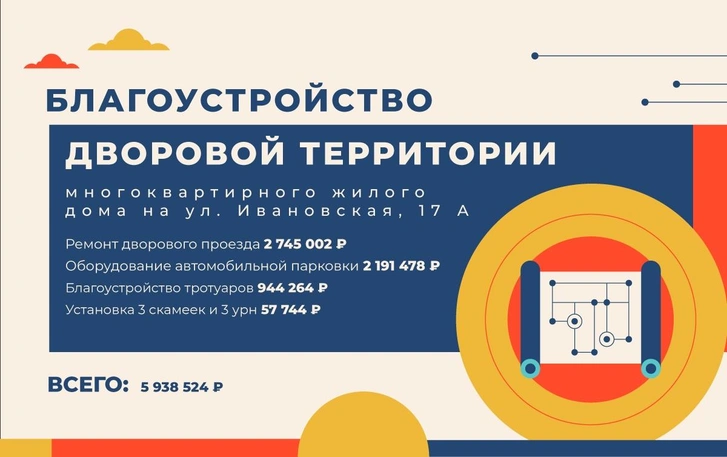 Один из самых крупных проектов за минувший период — ремонт дворовой территории на ул. Ивановская, 17. Дому удалось получить большую субсидию на обустройство — около 6 млн рублей. Благодаря ей смогли произвести целый перечень работ: отремонтировать дворовый проезд, оборудовать автомобильную парковку, благоустроить тротуары, установить 3 скамейки и 3 урны.